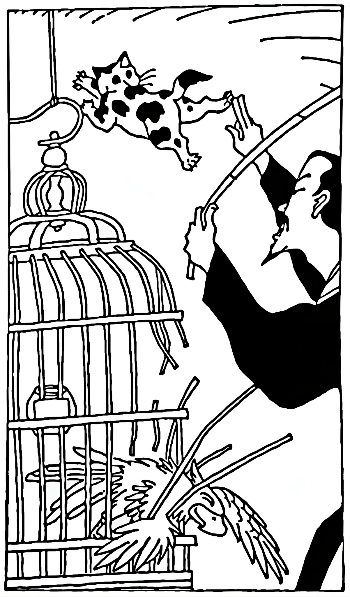One day, a man bought a cat from his neighbor. Hoping the cat would be able to catch mice well, he even selected a particularly auspicious day to bring it home. But, instead of chasing after those ferocious, evil mice, the cat first tore open the man’s beautifully carved birdcage and killed the parrot inside.